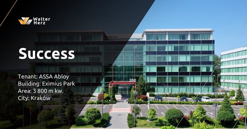 ASSA Abloy Opening Solutions Poland, a global leader in access control solutions, has extended its lease agreement at the Eximius Park complex in Cracow. The company has also decided to increase its leased area to approximately 3,800 square meters. Walter Herz provided advisory support during the contract renegotiation process.