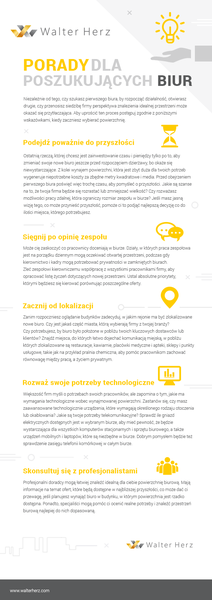 Before you start looking at the buildings, decide on the area in which the new office is to be located. Is there a part of the city that companies from your industry tend to choose? Do you need the office to be located near your key suppliers or customers? Find places easily accessible by public transport with nearby restaurants, cafes, medical facilities and pharmacies, shops and service points such as, for example, dry cleaning to help employees keep balance between work and private life.