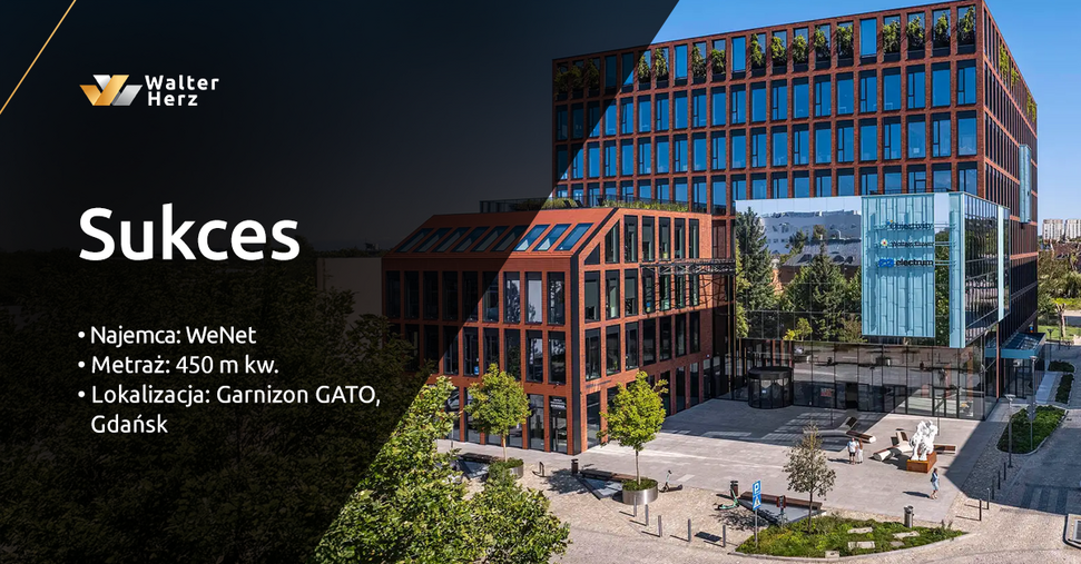 WeNet, the largest internet marketing company in Poland, has relocated its Gdansk office to the mixed-use Garnizon complex, owned by the Hossa Investment Group. The organization has leased over 450 sq m. in the GATO office building, expanding its workspace compared to its previous location. The Gdansk team of Walter Herz provided comprehensive support throughout the complex leasing process and contract negotiations.