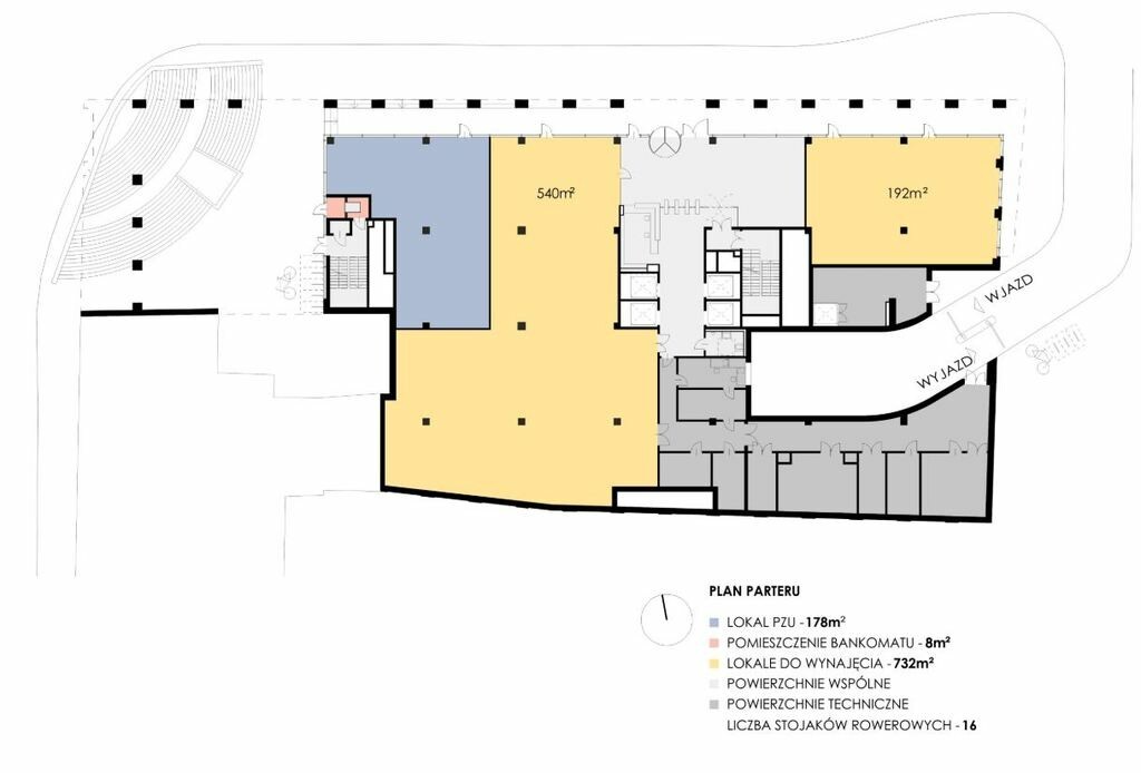 A newly built office building on the site of the former PZU building. Class A object with a total area of 14 thousand. sq m will be built in the very center of Wroclaw, at one of the largest transport hubs - Dominikański Square. The building will consist of 7 above-ground floors with a typical floor area of approx. 1,800 sq m and 3 underground floors with 140 parking spaces. The building will also include an electric car charging station, parking spaces for bicycles, as well as changing rooms and showers for cyclists. The architecture of the building will perfectly match the surroundings thanks to the combination of modern and traditional elements.