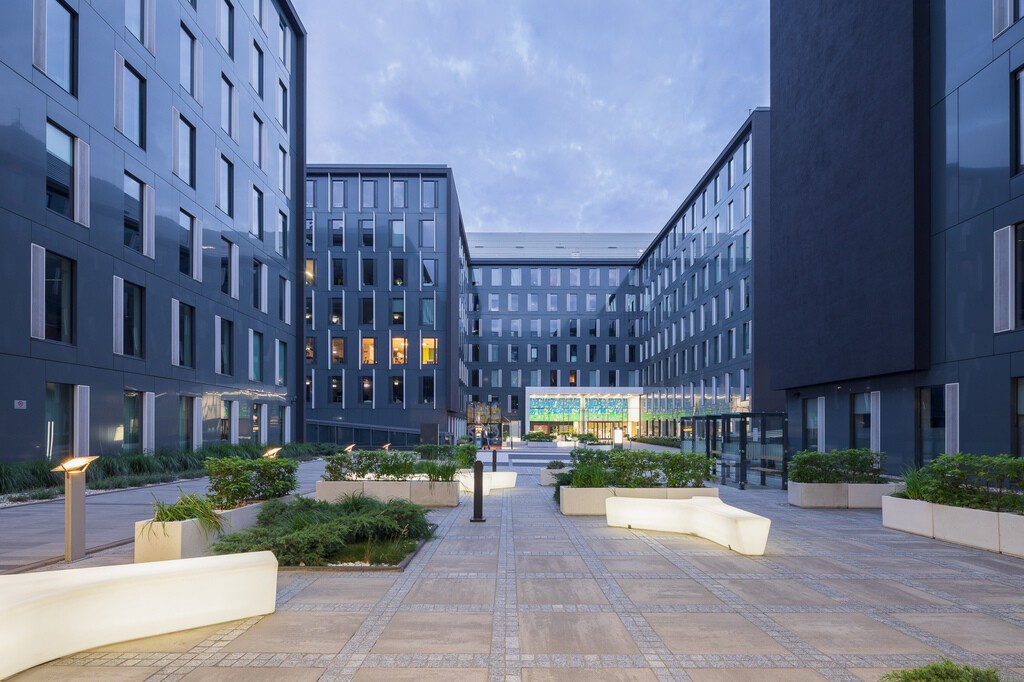 Complex of two 7-storeys buildings offering a total of approximately 37 000 m2 of the modern .The second phase of development of around 18 5000 m2 was delivered in 2011, together with 300 underground parking spaces. The office space in office complex was designed with effective arrangement primarily in mind. The typical floor plate of around 2 700 m2 can be arranged as an open-space plan as well enables a customized interior design. The office space features the highest contemporary standards with suspended ceilings, high class air conditioning, modern building management, openable windows and two independent supplies of electricity all being included in a standard fit-out.