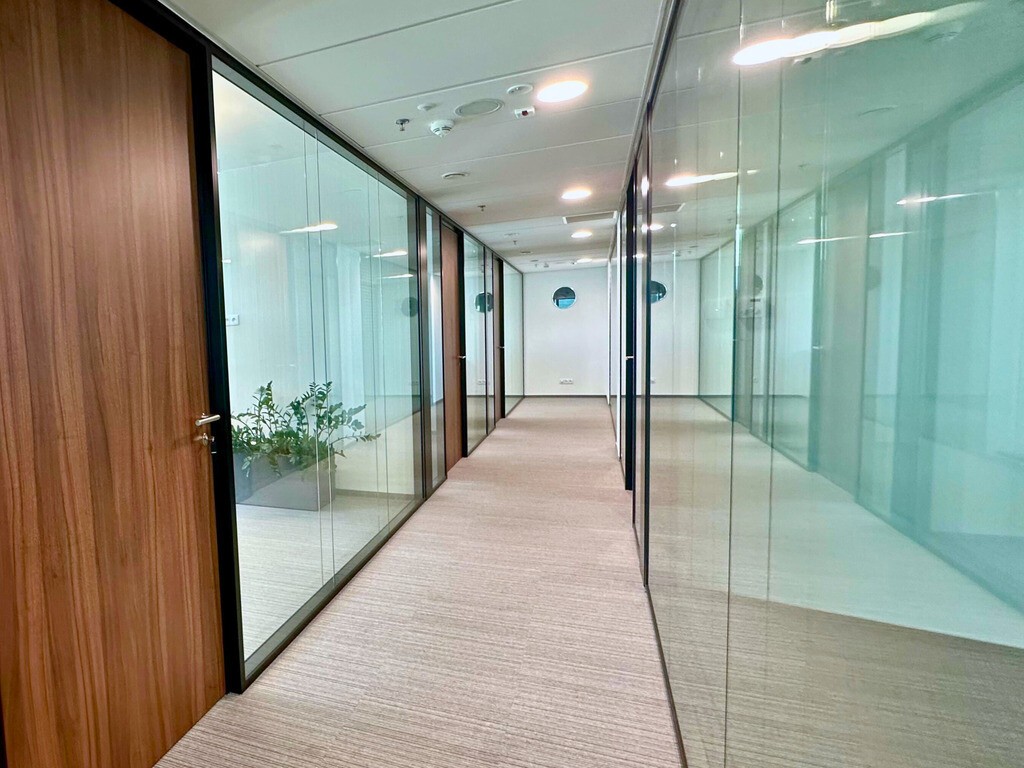 The premises are located on the 11th floor of the prestigious Widok Towers office building. The 357 sq m office is designed in a private office layout (gabinetowy), finished to a high standard. Double glazing ensures excellent acoustics and provides a high level of comfort for work. The premises are currently divided into the following rooms: