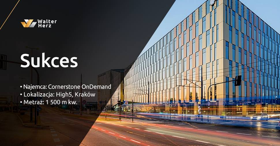 Firma Cornerstone OnDemand, lider w dziedzinie rozwiązań do zarządzania kapitałem ludzkim, zdecydowała się pozostać w krakowskim kompleksie High5ive. Firma przedłużyła umowę najmu na ponad 1500 mkw. powierzchni. Kompleksowe wsparcie doradcze w procesie renegocjacji umowy zapewniła najemcy firma Walter Herz.