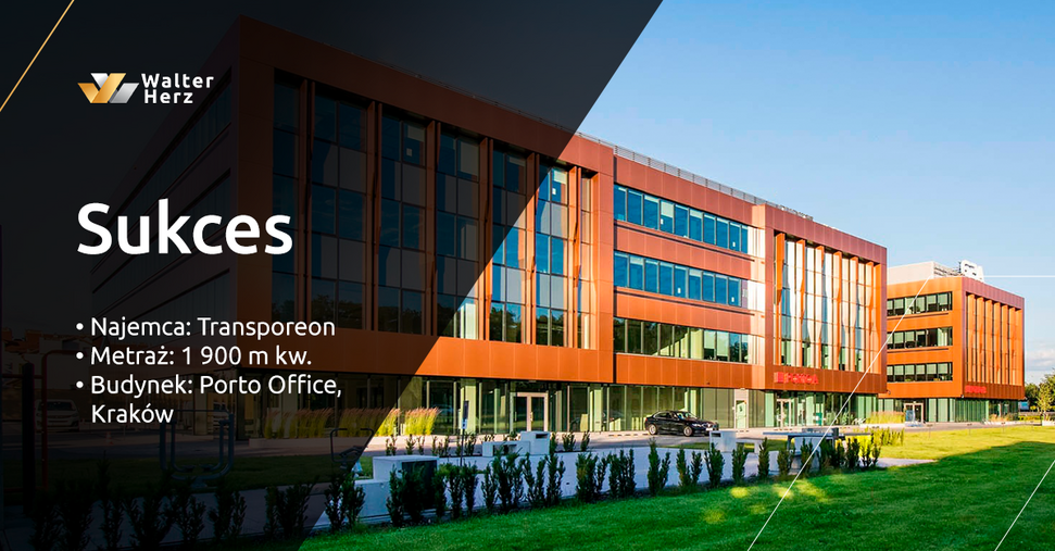 Międzynarodowa firma logistyczna Transporeon, należąca do Grupy Trimble, przedłużyła umowę najmu w krakowskim budynku biurowym Porto Office A, w którym zajmuje powierzchnię przeszło 1900 mkw. W procesie renegocjacji kontraktu oraz modernizacji biura najemcy doradzała firma Walter Herz.