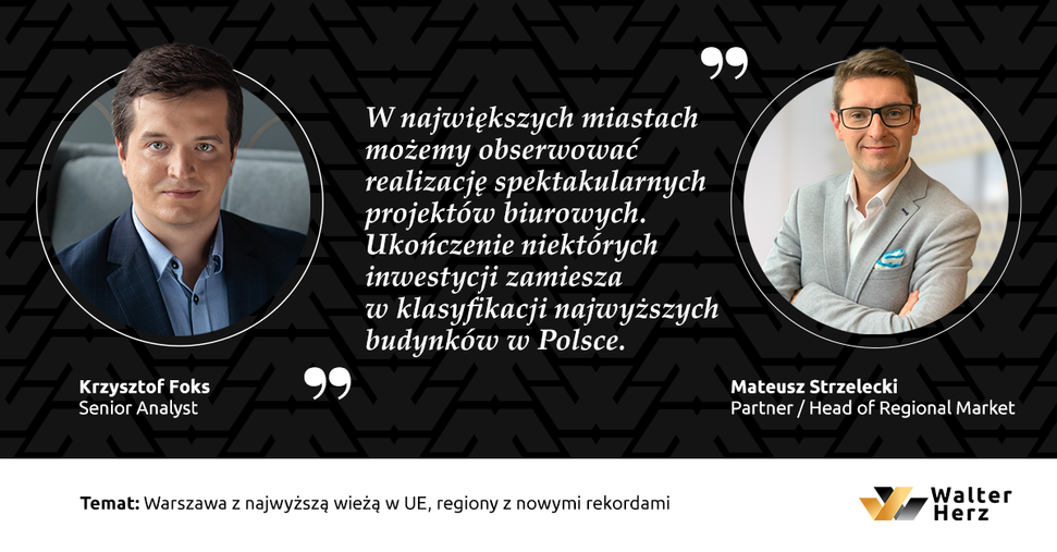 - Z uwagi na obecną sytuację wielu deweloperów przesuwa terminy budowy nowych projektów. W regionach, w których wciąż widoczny jest rozwój sektora usług dla biznesu i IT, wystartuje w tym roku mniej inwestycji biurowych niż planowano. Deweloperzy stawiają głównie na lokalizacje, w których zapotrzebowanie na biura jest nadal wysokie. Najwięcej nowych projektów czeka na rozpoczęcie w Trójmieście i Krakowie. Budowa inwestycji zainicjowanych przed pandemią kontynuowana jest bez większych zakłóceń, a na poszczególnych rynkach oddawane są kolejne obiekty - mówi Mateusz Strzelecki, Partner / Head of Regional Markets w Walter Herz.