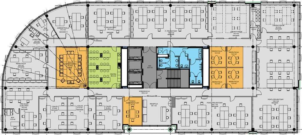 •Powierzchnia typowego piętra: od 1 500 m² do 3 000 m²
