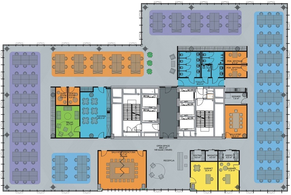 •Powierzchnia typowego piętra: od 1 500 m² do 3 000 m²