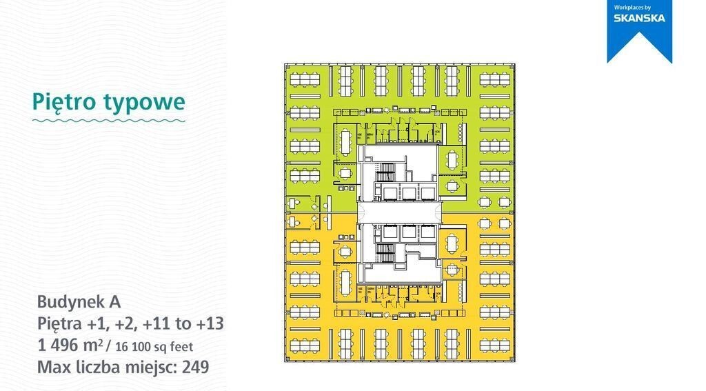 •1 496 m² (1, 2, 11, 12, 13 piętro),
