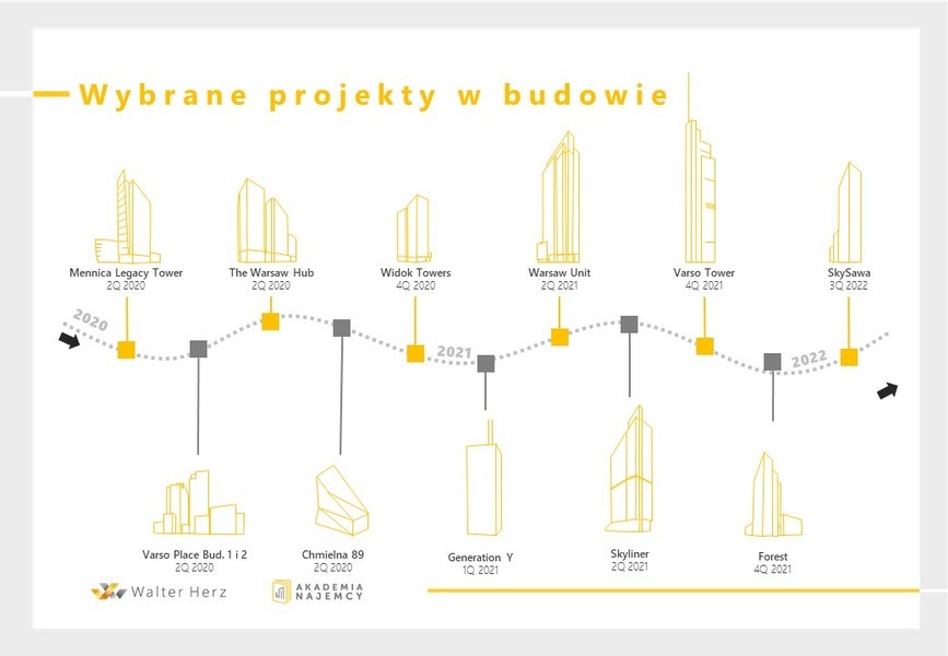 Varso Place, Warsaw Hub, Skyliner Generation Park, Skysawa, Mennica Legacy Tower, Moje Miejsce II and DSV headquarters are among the facilities currently under construction.