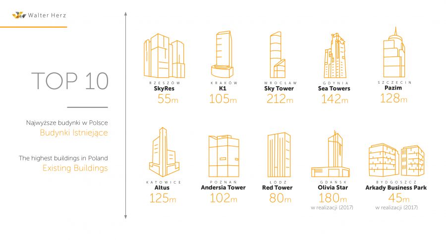 Office market is growing at an unprecedented pace. According to Walter Herz specialists, the trend of strong expansion of tenants, both in Warsaw and in regional cities, connects with record-high level of new supply of office space. Some of the projects entering the market set new standards, both in terms of solutions, and the scale of investment. Office space resources in the country effectively enrich the emerging high-rise buildings, which also affect the change in the landscape of the Polish cities.