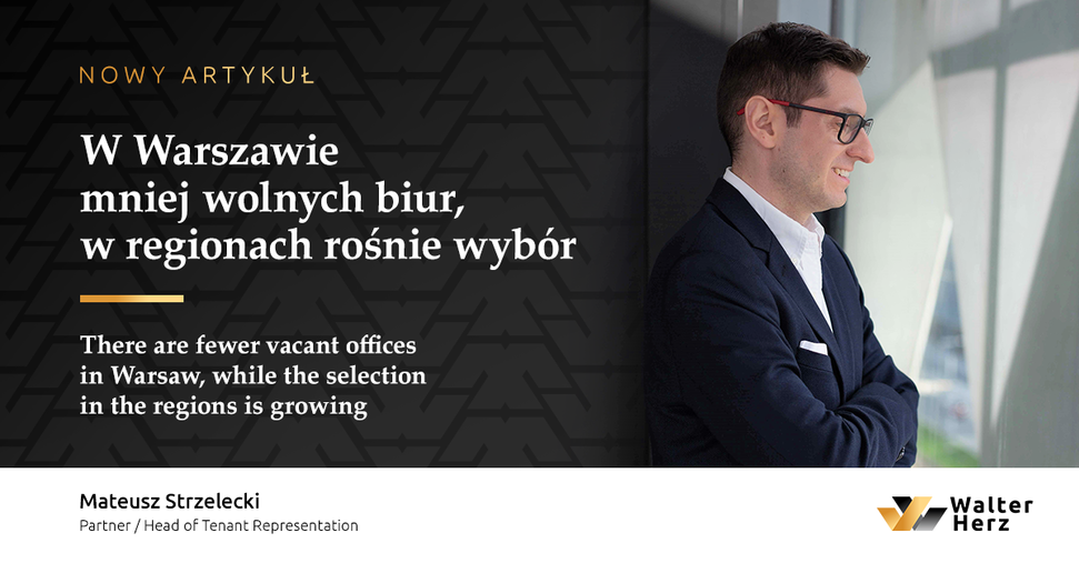 The greater demand for offices is offset by a large amount of space delivered in regional markets outside Warsaw. Hence, the vacancy rate in the leading locations in Poland, according to Walter Herz data, remains on average at a similar level to that at the turn of the year.