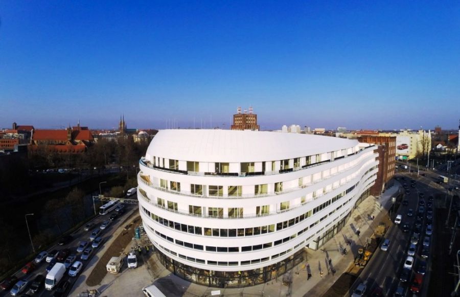 The apartments, a hotel and the offices were designed in the multifunctional complex OVO Wrocław, which was built by Wrocław's Promenada Staromiejska promenade and will soon be open. The operator of the five-star hotel, which will include 189 luxurious rooms, is DoubleTree by Hilton. The building will also include 7 conference rooms, which together with a banquet hall can host up to 500 people. In addition, it will have a sports club, a fitness center with a swimming pool and SPA, restaurants, a cafe and a casino. It is worth noticing the original shape of the building, which resembles a drop of water with a façade without the edges and corners.