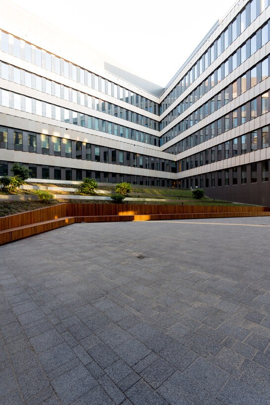 Office space in a modern A-class office complex. Tenants have at their disposal 220 underground and 520 above-ground parking spaces, as well as stands and changing rooms for cyclists. The complex offers a full standard of finishing, incl. modern air conditioning, raised floors, suspended ceiling, cabling, tilt windows as well as services such as reception and building access control. The glazed facade of the building guarantees optimal lighting of office interiors. The facilities have a BREEAM certificate and beautiful green patios that can be used by all tenants. Nearby there are public transport stops (buses and trams) and an expressway (Center - Chopin Airport).