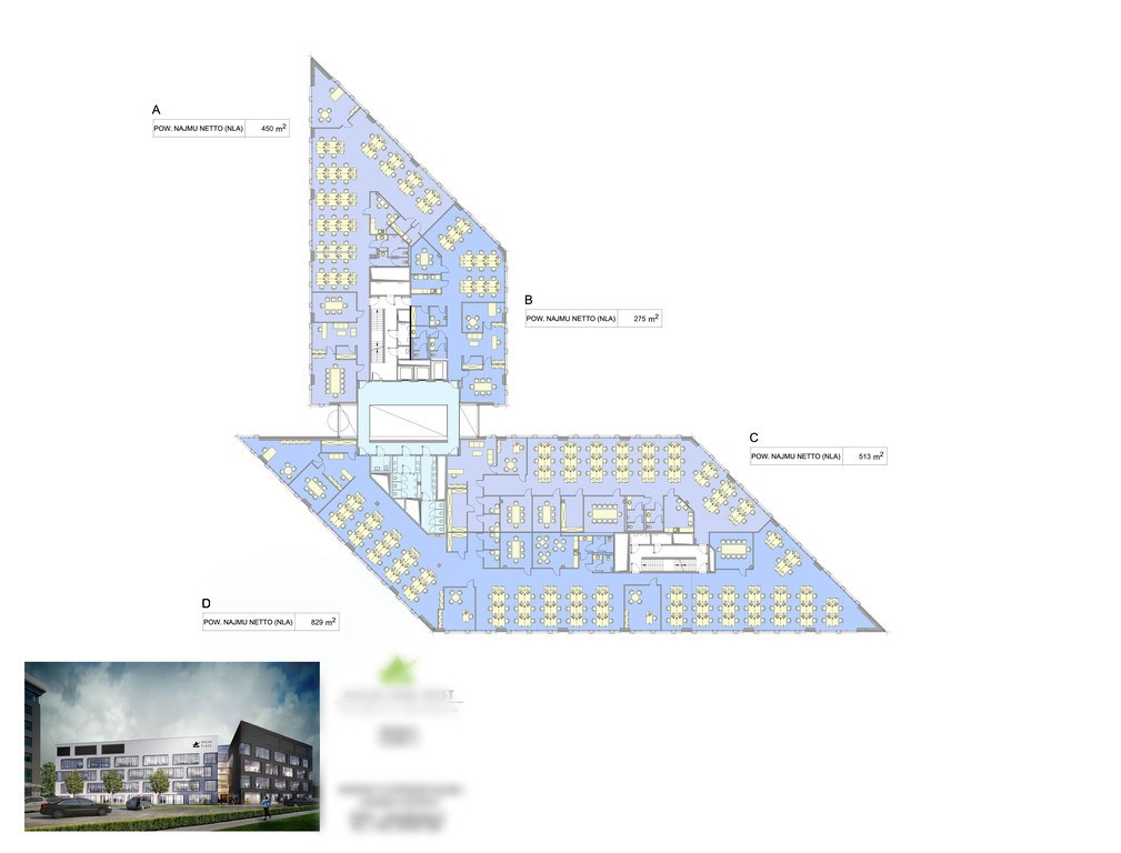 The office complex consisting of four interconnected buildings A, B, C and D, with a total area of over 50 000 m2. All four buildings make up a well-equipped and functional office complex located in the immediate vicinity of Szczęśliwicki Park - 4 km from the city center and 7 km from the airport. The location provides easy access to public transport and good connections with other districts of the city. For rental prices reach maintenance fees and utility charges.