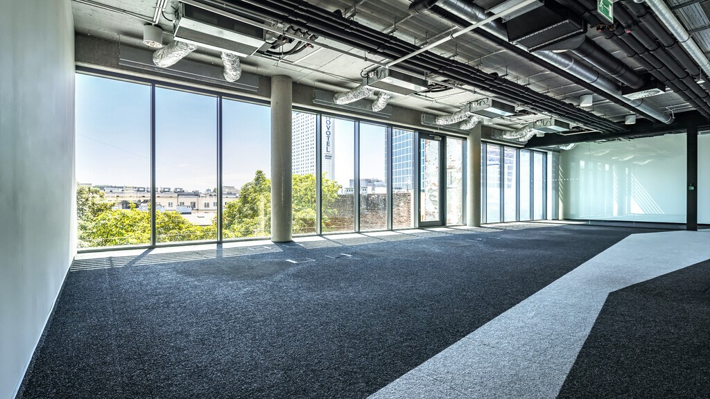 Office space in a 7-storey office building offering for rent 3 800 sqm of Grade A office space is provided for the disposal of its tenants 25 underground parking spaces. The building stands out interesting architecture, the most characteristic feature is the wavy, glass facade providing daylight to the office. Office building is located in a prestigious part of Warsaw, is surrounded by exclusive shops and numerous service outlets and restaurants. Located in the center of Warsaw provides excellent access to public transport.