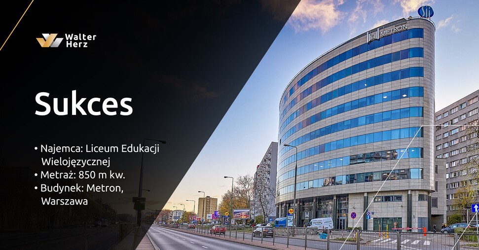 Uczniowie Liceum Edukacji Wielojęzycznej rozpoczną naukę po wakacjach w nowej lokalizacji szkoły, która mieściła się będzie teraz w budynku Metron, usytuowanym przy al. Niepodległości 69 w Warszawie. W nowoczesnym biurowcu, położonym na Mokotowie, tuż przy stacji metra szkoła wynajęła 850 mkw. powierzchni, obejmującej całe piętro. Kompleksowego wsparcia w procesie najmu oraz negocjacjach warunków kontraktu udzielili najemcy doradcy Walter Herz – Emilia Legierska i Monika Szymczyk.