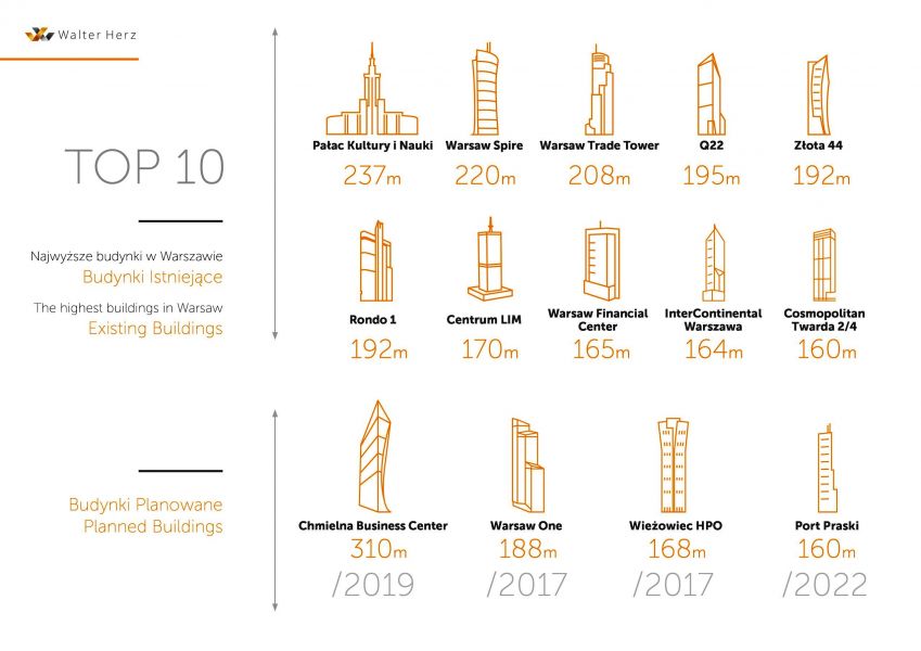 Warszawa szybko zaczęła obrastać lasem żurawi, aż stała się ogromnym placem budowy. O skali rozbudowy może świadczyć rekordowy wynik 400 tys. mkw. powierzchni biurowej, która oddana została do użytku w 2000 roku, który jak dotąd nie został pobity. W ciągu 10 lat, od 1991 do 2001 roku podaż nowoczesnej powierzchni biurowej w Warszawie wzrosła z 250 tys. mkw. do 3,5 mln mkw. W pokomunistycznej Polsce inwestowały firmy austriackie, skandynawskie i belgijskie, później amerykańskie, a dziś kapitał międzynarodowy, wspominają eksperci Walter Herz.