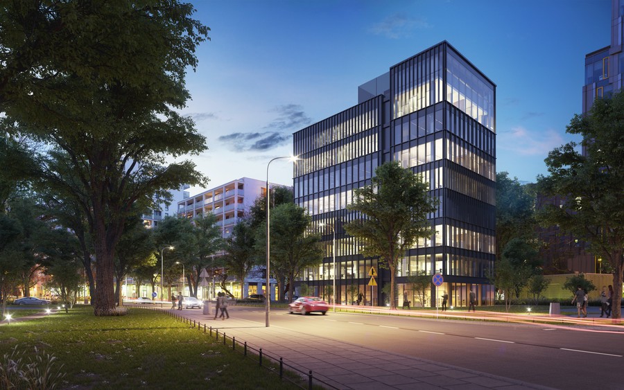 Warszawski biurowiec EQ2 Grupy Waryński z wiechą