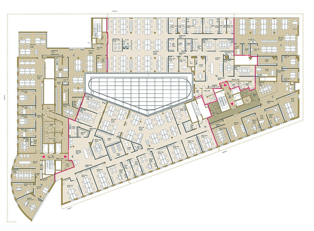 Powierzchnia w obiekcie biurowo-handlowym który, oferuje 12 050 m2 powierzchni biurowej klasy A+, na 4 kondygnacjach. Budynek zlokalizowany jest w bezpośrednim sąsiedztwie Warszawskiej GPW, muzeów, ambasad i hoteli. Centralna lokalizacja zapewnia szybką komunikację z każdym punktem w Warszawie dzięki bliskości przystanków autobusowych, tramwajowych oraz stacji kolejowej – Warszawa Powiśle (500 m). Lokalizacja Placu Trzech Krzyży oferuje szereg udogodnień w postaci restauracji, barów, hoteli oraz centrów konferencyjnych. Dodatkowym atutem jest bliskość parku.