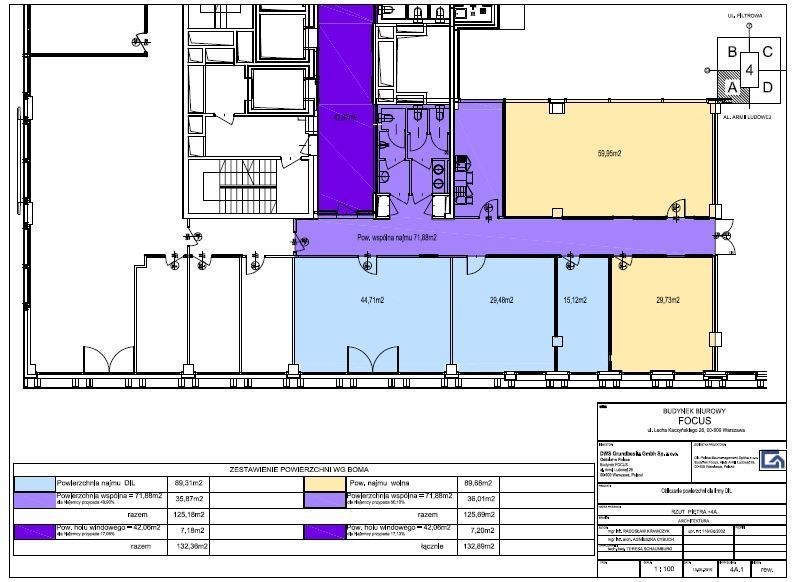 Nowoczesny budynek biurowy klasy A, zlokalizowany w południowej części Śródmieścia. Obiekt oferuje ponad 30 000 m2 powierzchni biurowej zlokalizowanej na 11 piętrach oraz 3-poziomowy parking podziemny. Biurowiec składa się z czterech całkowicie niezależnych i samowystarczalnych części. W obszernym atrium znajdują się m.in. restauracja, kawiarnia, klub fitness oraz centrum konferencyjne. Bardzo dogodna lokalizacja, w pobliżu stacji metra oraz licznych środków komunikacji miejskiej zapewnia sprawne połączenia z pozostałymi dzielnicami. Do ceny należy doliczyć opłaty eksploatacyjne oraz współczynnik powierzchni wspólnych 6%. Zdjęcia przedstawiają przykładowy standard powierzchni w budynku.