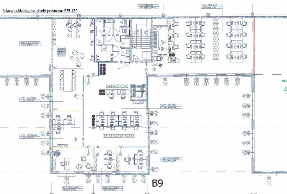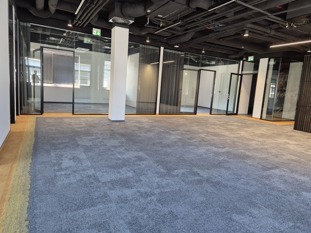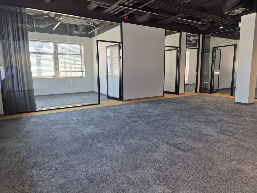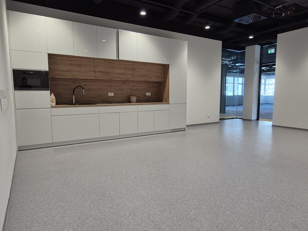 Biuro przygotowane jest dla 38 osób. Składa się z dwóch open space-ów, 4 gabinetów, sali konferencyjnej, copy pointu, garderoby i dużej kuchni.