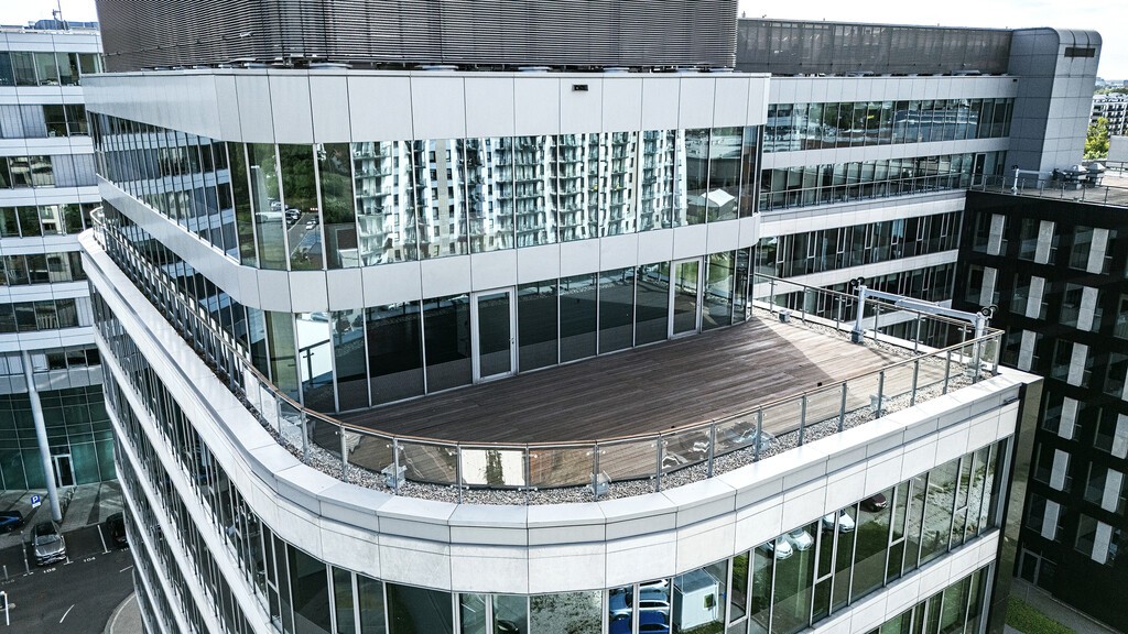 Kompleks oferuje także szeroki wachlarz udogodnień, w tym restaurację i punkty usługowe na parterze, a także szybkie windy i nowoczesne systemy klimatyzacji i wentylacji. Duże tarasy na 8. kondygnacji, z możliwością aranżacji zielonych stref wypoczynku, zapewniają unikalną przestrzeń relaksacyjną z widokiem na panoramę Warszawy.