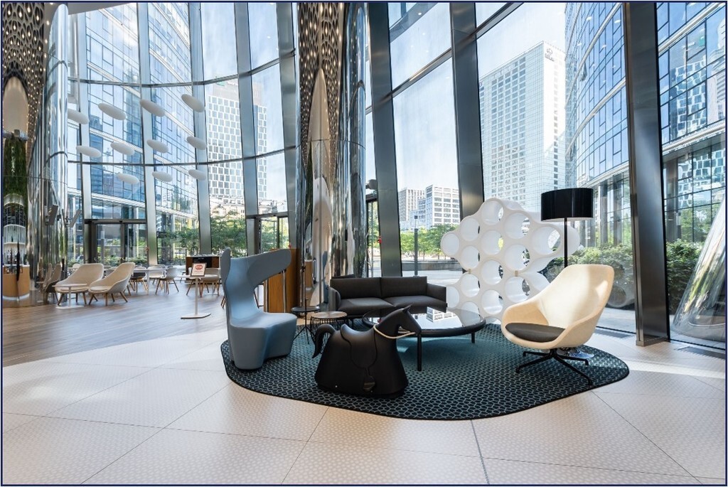 Dla najemców i ich gości dostępnych jest 1300 miejsc parkingowych w podziemnym garażu. Przestrzeń wokół budynku, znana jako Plac Europejski, to oaza zieleni z 140 drzewami, fontannami oraz kaskadowym strumieniem, oferująca także liczne restauracje, eleganckie sklepy i miejsca do wypoczynku. Na 46. piętrze znajduje się ruchomy taras widokowy, z którego można podziwiać panoramę miasta.