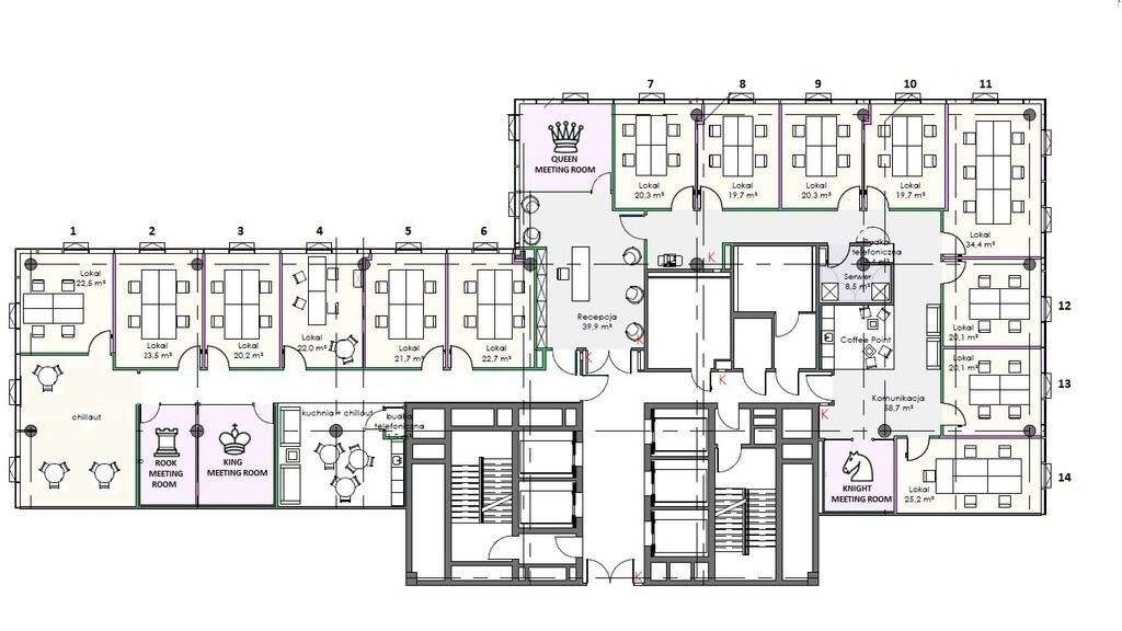 •Powierzchnia typowego piętra: od 1 500 m² do 3 000 m²